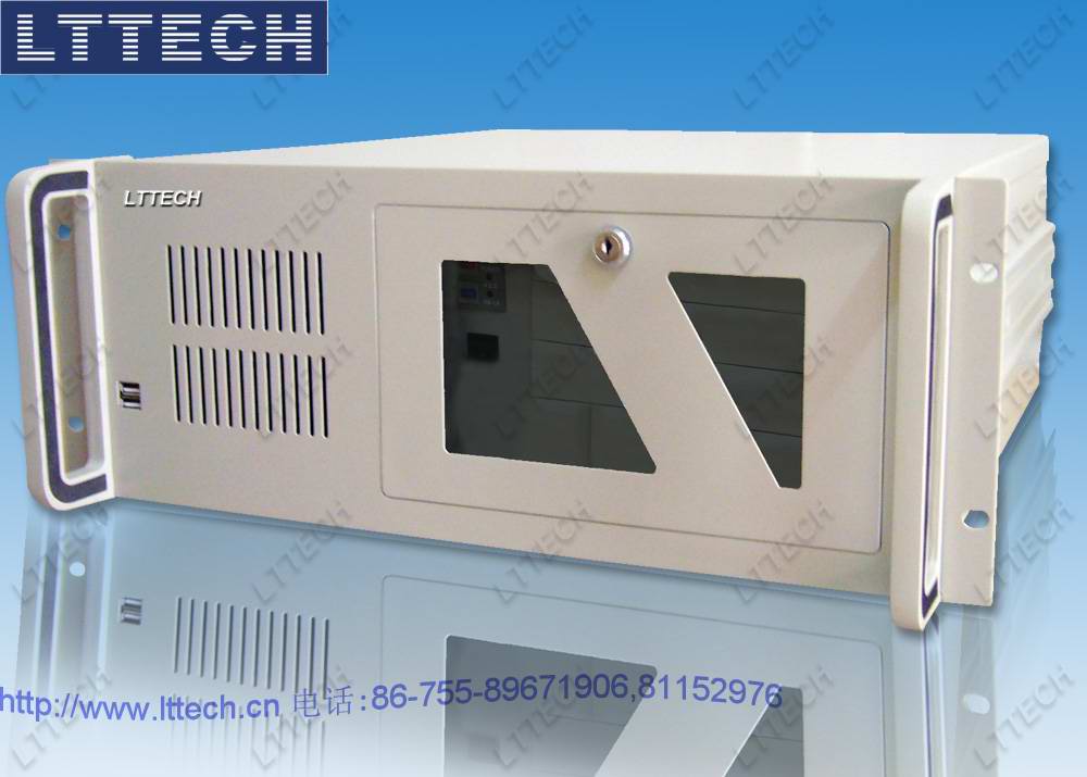 4u高度工业机箱,19"上架机箱,符合EIA-310C上架标准,支持多种ATX12"*9.6"普通商用电脑主板及14槽ISA/PCI/PICMG工业无源底板,支持9个3.5"硬盘,2个5.25"光驱,1个软驱驱动器空间,或12个3.5"驱动器空间,支持普通标准ps/2电源