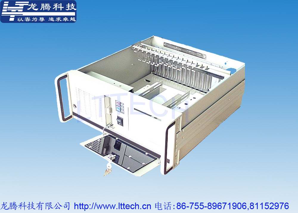 4U高度19"上架型工控机箱,符合EIA-310C上架标准; 支持多种12"×9.6"商用电脑主板及14槽ISA/PCI/PICMG工业无源底板;支持2个5.25"光驱和4个3.5"硬盘驱动器空间 工控机箱优化特点